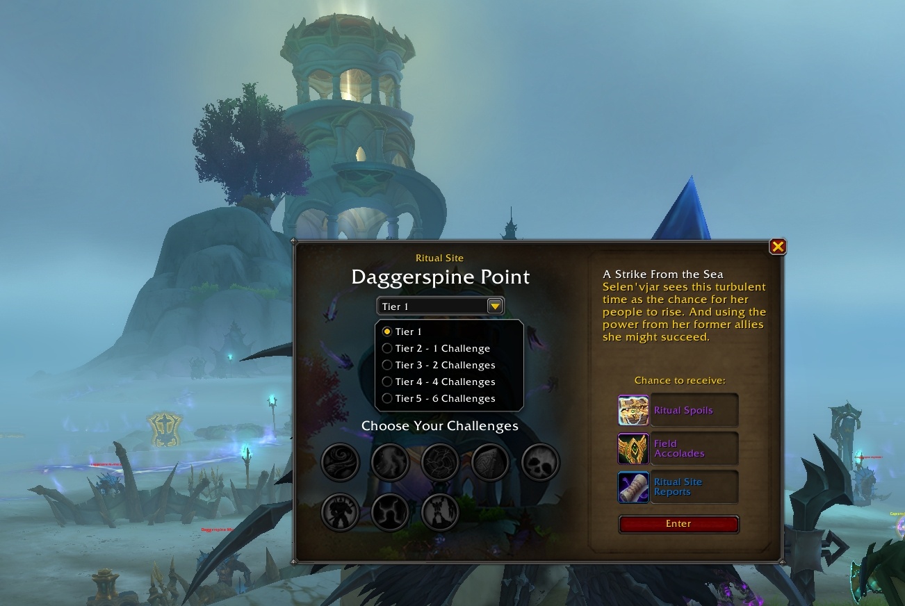 The system lets you increase difficulty before starting. The more you invest into the ritual, the harder it becomes. There are 5 tiers, where 3rd, 4th, and 5th tiers include one, two, or three challenges accordingly. Completing the activity on any tier unlocks the following tier, just like it does in Delves.